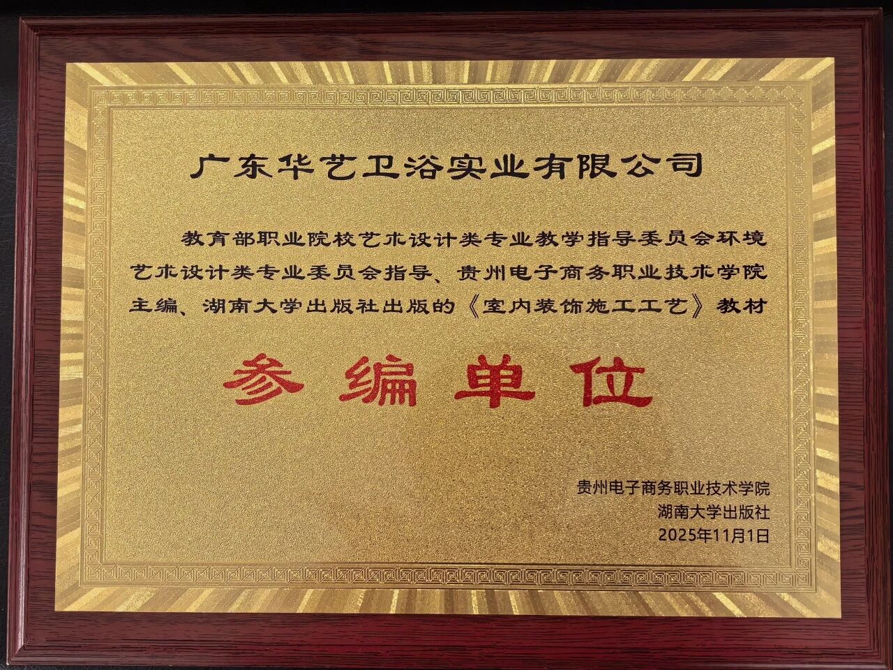 该教材全面介绍了旧改项目中的施工工艺、操作规范及质量控制等内容,华艺卫浴作为行业优秀企业,以自身丰富的行业经验和技术积累为《室内装饰施工工艺》旧改教材提供重要支持,会上获颁《参编单位证书》。