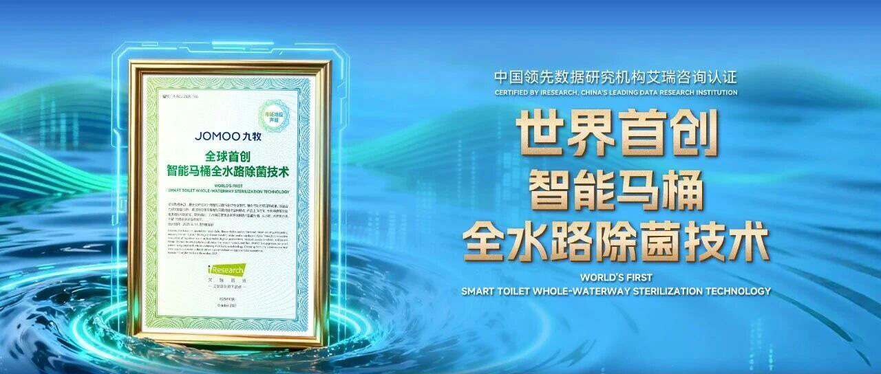 11月25日,九牧“智能马桶全水路除菌技术被领先的商业数据和研究机构艾瑞咨询授予“全球首创”权威认证,展现了九牧在卫浴健康科技上的不断突破创新,标志着智能马桶健康标准从表面洁净向全水路无菌的跃迁。