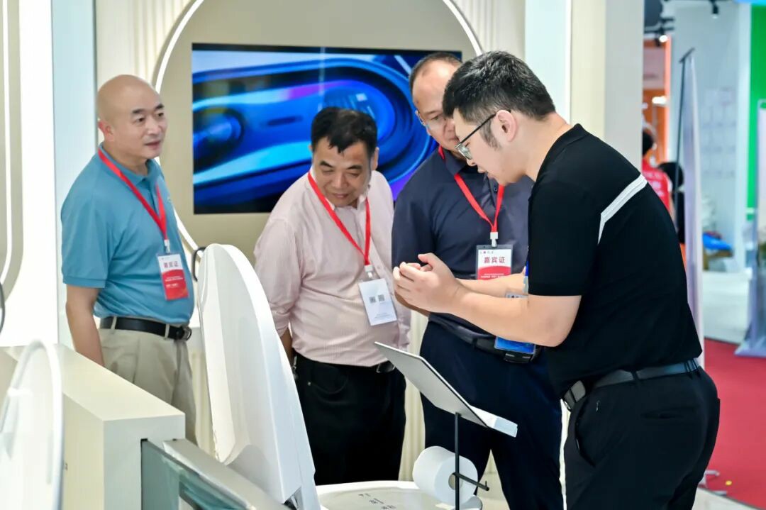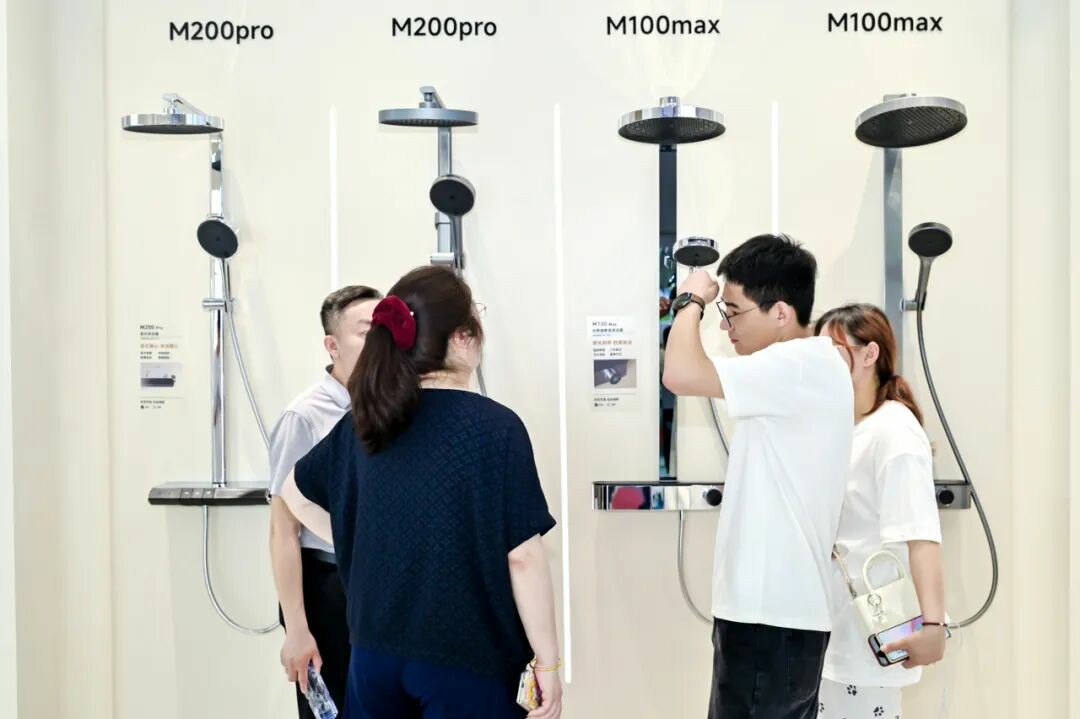 在九牧集团小牧卫浴展台,多款高颜值、高科技、高质价比的产品吸引了众多观众围观体验。G5浴室柜兼顾科技感、实用性与美学细节,满足现代家庭对高效洗漱、智能体验和空间品质的综合需求。Z60智能马桶、Z80Pro智能马桶、V3水洗轻智能马桶针对不同如厕需求,提供同样周到的轻智能服务,同样吸引了不少观众了解体验。