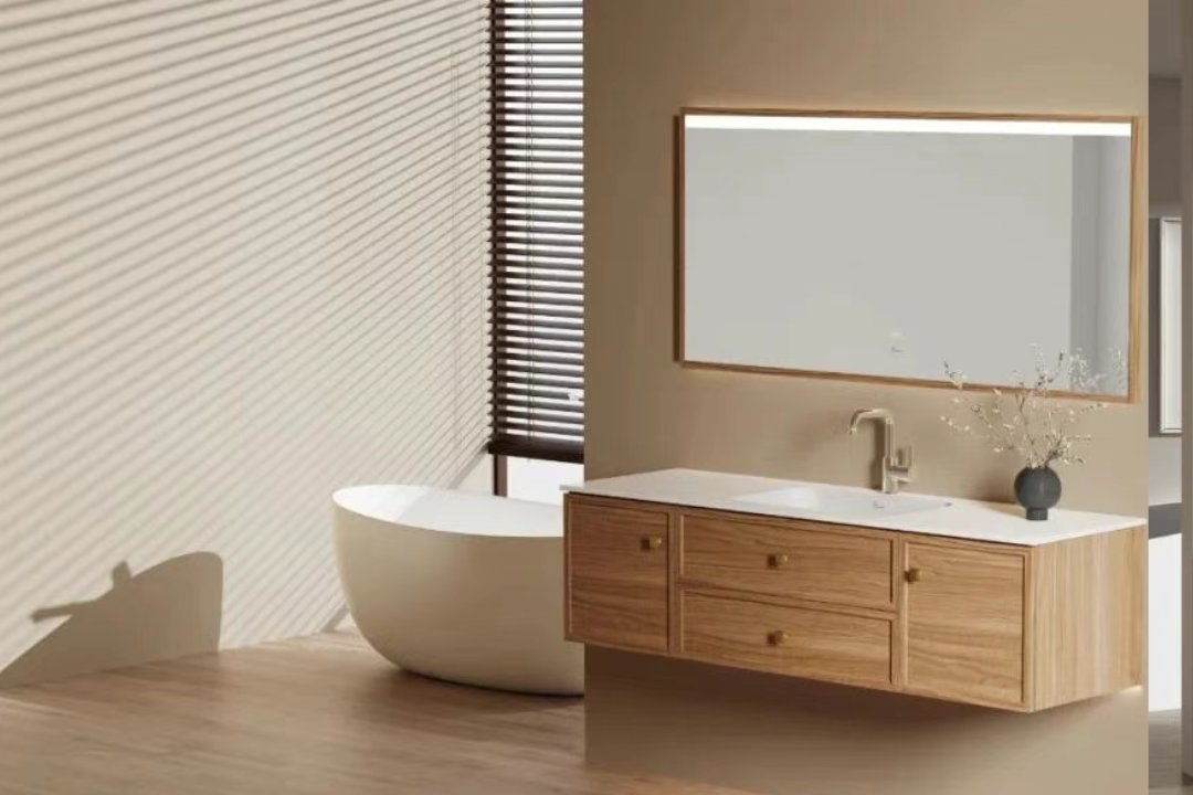 作为荣获"2025沸腾质量奖"防潮环保标杆、耐用优等多项国家权威认证的产品,奇境定制浴室柜在展会现场受到广泛关注。这款产品不仅印证了帝王对品质的极致追求,更将亚克力4.0工艺优势体现得淋漓尽致。台盆台面采用公爵板一体成型,视觉高级,触感温润亲肤,寒冷季节也不显冰凉,特别适合有婴幼儿或宠物的家庭。其材质抗冲击性能达到普通陶瓷的10倍以上,轻松应对日常磕碰与跌落,结合无缝工艺可真正做到抗污、防积垢,日常清洁省心省力。