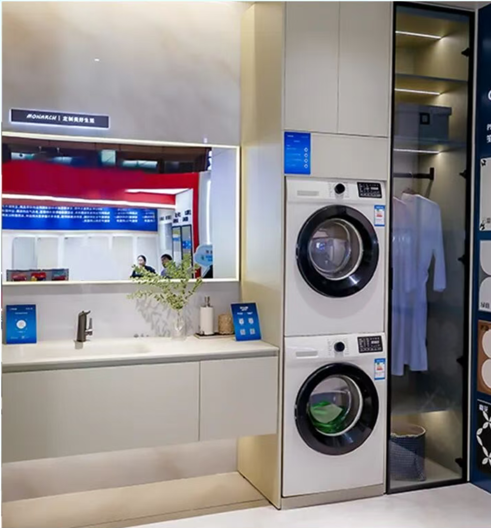此外,本次展出的奇境定制浴室柜还推出了延伸的洗烘柜模块及三分区储物边柜,全方位展现了帝王在定制领域的系统化创新与设计能力。