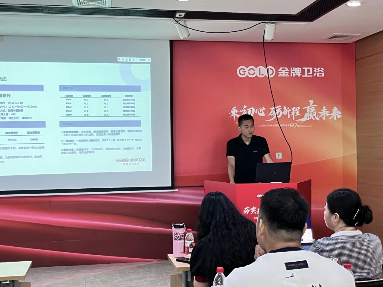 金牌卫浴大区总监张旭围绕《2025年年度产品规划》进行了详细解读。他从品类布局、技术路线、价格策略等多维度,全面勾勒出金牌卫浴下半年的产品发展蓝图,助力经销商精准把握产品节奏,明确终端店面上样策略,进一步优化区域产品结构,抢占市场先机。