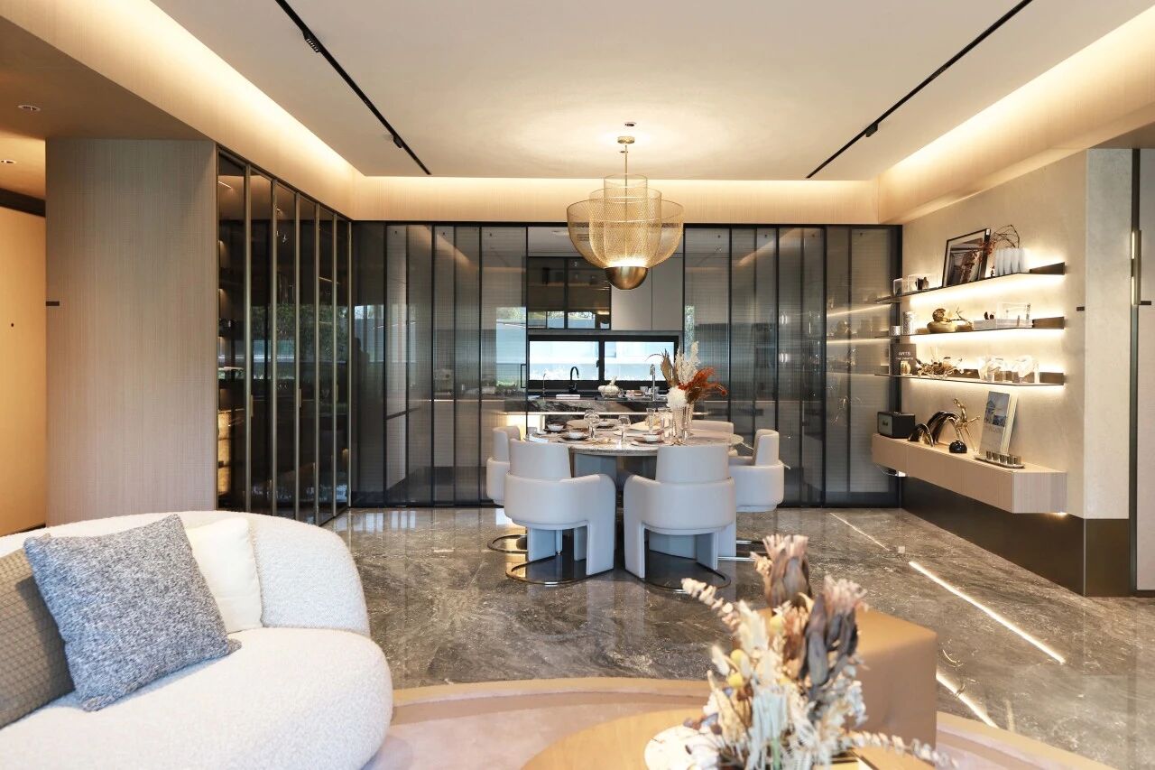 1858高定全景门从外观设计到五金细节,皆精准适配场景特性、用户习惯与审美偏好:以极简线条勾勒轻盈质感,用比例美学塑造隽永气质,靠无界设计打破空间壁垒,搭配严苛工艺与高端材质,将“安全、舒适、绿色、智慧”的品质追求融入每一处细节。这既完美契合中海高端豪宅的定位调性,更以定制化方案诠释着高端全景家居生活美学,成为中海“好房子”建设中的家居品质标杆。