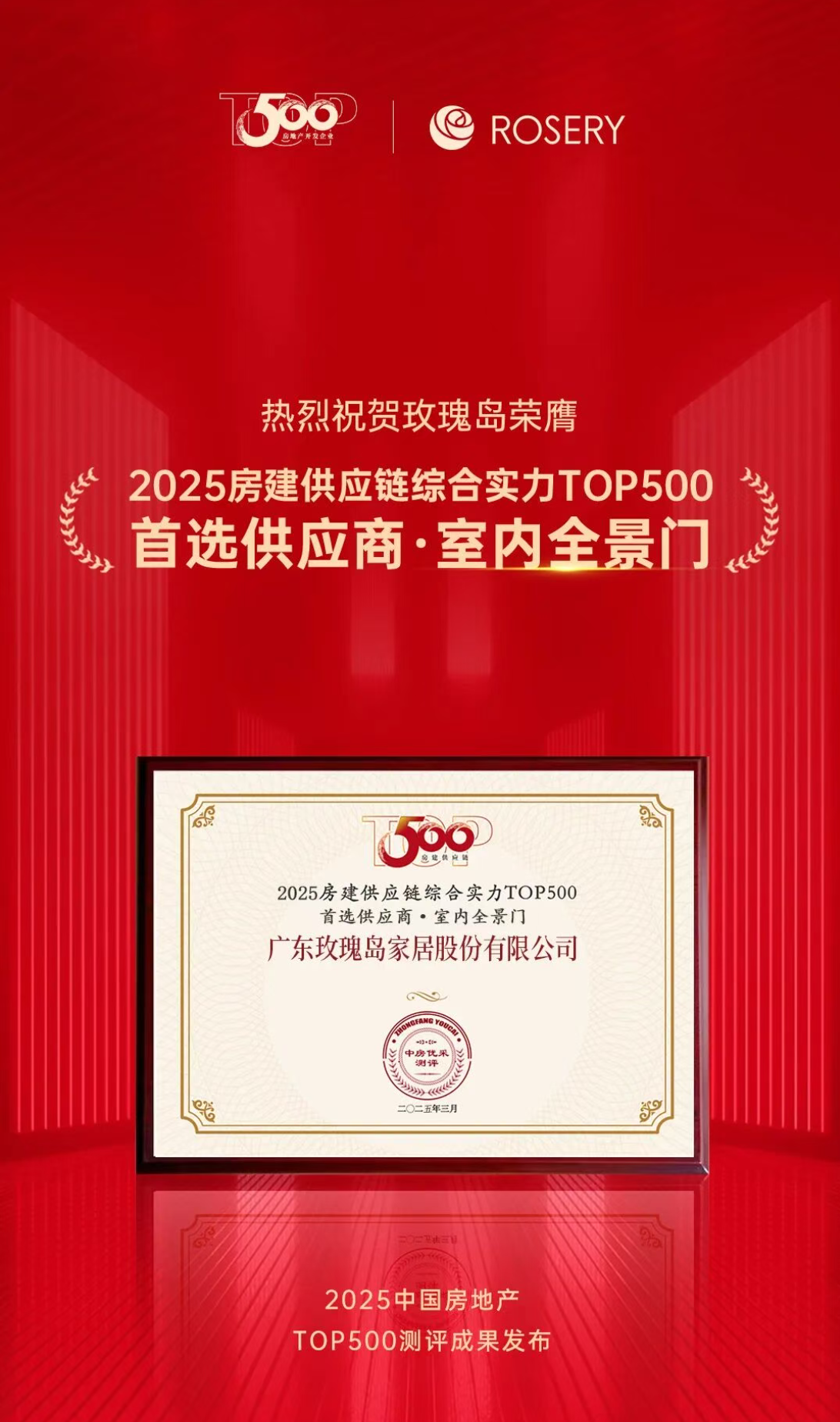 此次奖项是继玫瑰岛淋浴房、全景门双品类荣获“2025房建供应链综合实力TOP500首选供应商”后的又一重磅荣誉,且同步入选《2025 高端住宅产品力提升案例暨配套供应链应用样本调研报告》,成为行业认可的优质应用样本。这一双重肯定,既彰显玫瑰岛近三十载厚积的品牌底蕴和价值,更是对其品质服务、品质交付实力的权威认证,不仅为高端住宅产品力提升提供了可借鉴的全景家居系统解决方案,更印证了玫瑰岛在房建供应链中的重要地位与标杆影响力。
