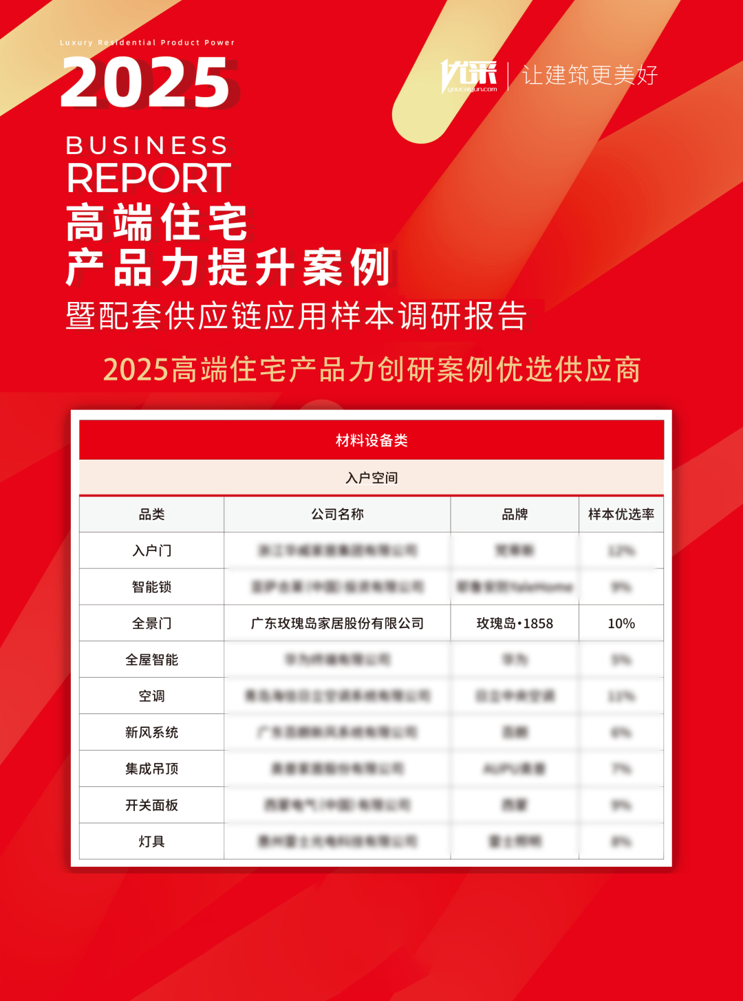 本次活动隆重发布了《2025高端住宅产品力提升案例暨配套供应链应用样本调研报告》。该报告围绕高端供应链企业的品牌传承力、产品创新力、项目营销赋能、产能储备、跨区域交付、资金抗压性等维度全方位梳理各品类新质品牌,集严谨性、科学性、价值力于一身,利用细分市场客观展现高端品牌服务实力以房建高端市场服务能力为支撑点进行客观分析,评估出年度高端住宅工程市场占有率高且口碑卓越的企业,作为供应商首选品牌,为“好房子”向高品质升级提供科学选材参考。