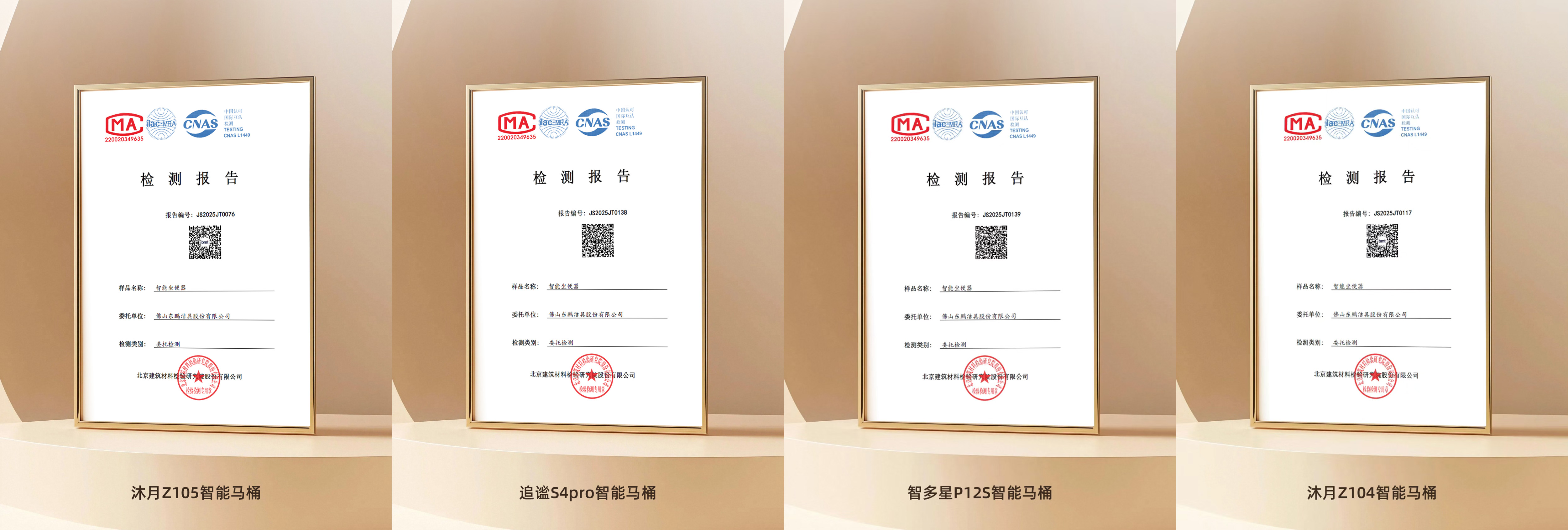 △ 东鹏智能马桶明星产品全线通过最高等级5A级认证