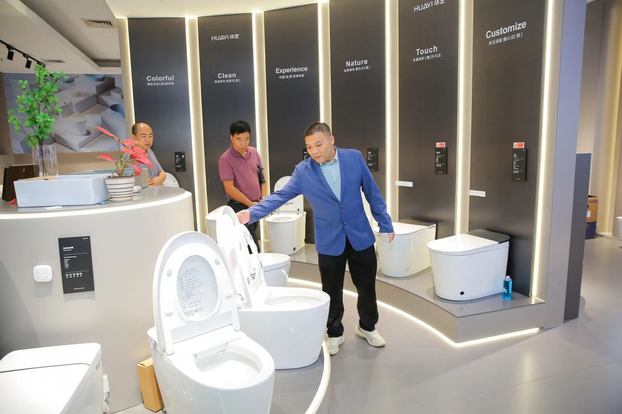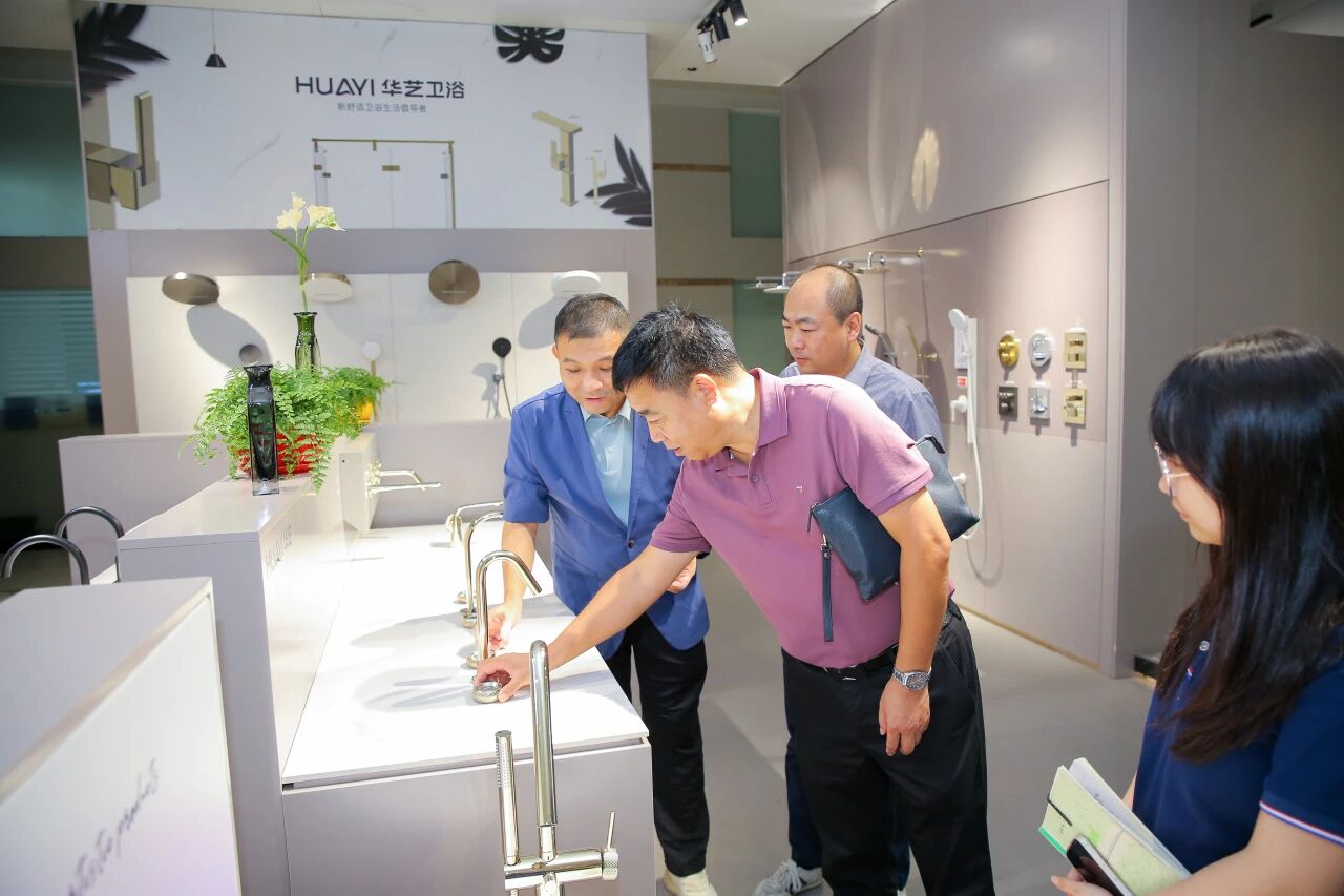 在何总的陪同下,王会长首先参观了华艺卫浴的品牌展厅,全面了解华艺卫浴30多年的企业发展历程、产品矩阵及核心技术。何总介绍,华艺卫浴自成立以来,便秉持对高品质产品的执着追求,深耕技术领域,依托强大的研发实力和创新能力,不断推出引领市场潮流的卫浴新品。王会长对华艺卫浴极具个性化的产品设计给予高度的评价,并赞其“是华夏的艺术之光”。