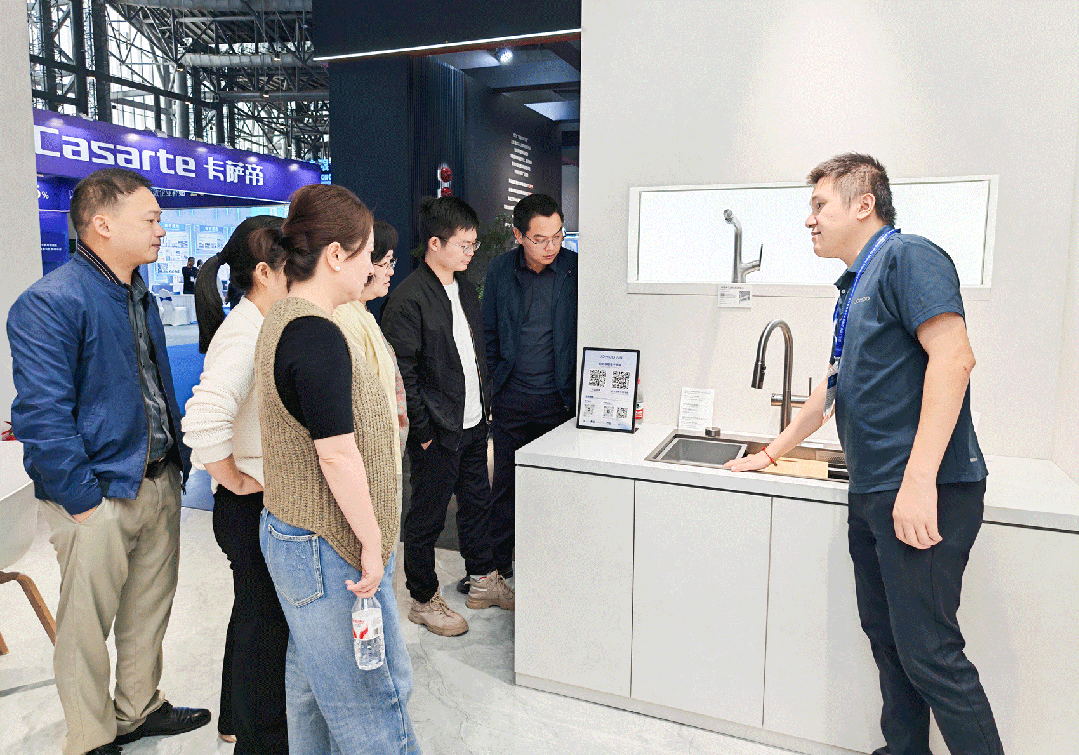 本次展会,九牧围绕“智能、健康、绿色”三大主题,系统性展示了全场景空间解决方案。展区通过沉浸式体验,展示了智慧卫浴空间、专业美妆梳洗区及健康净洗厨房系统,以场景化体验传递九牧对未来人居生活方式的深刻洞察与创新成果。