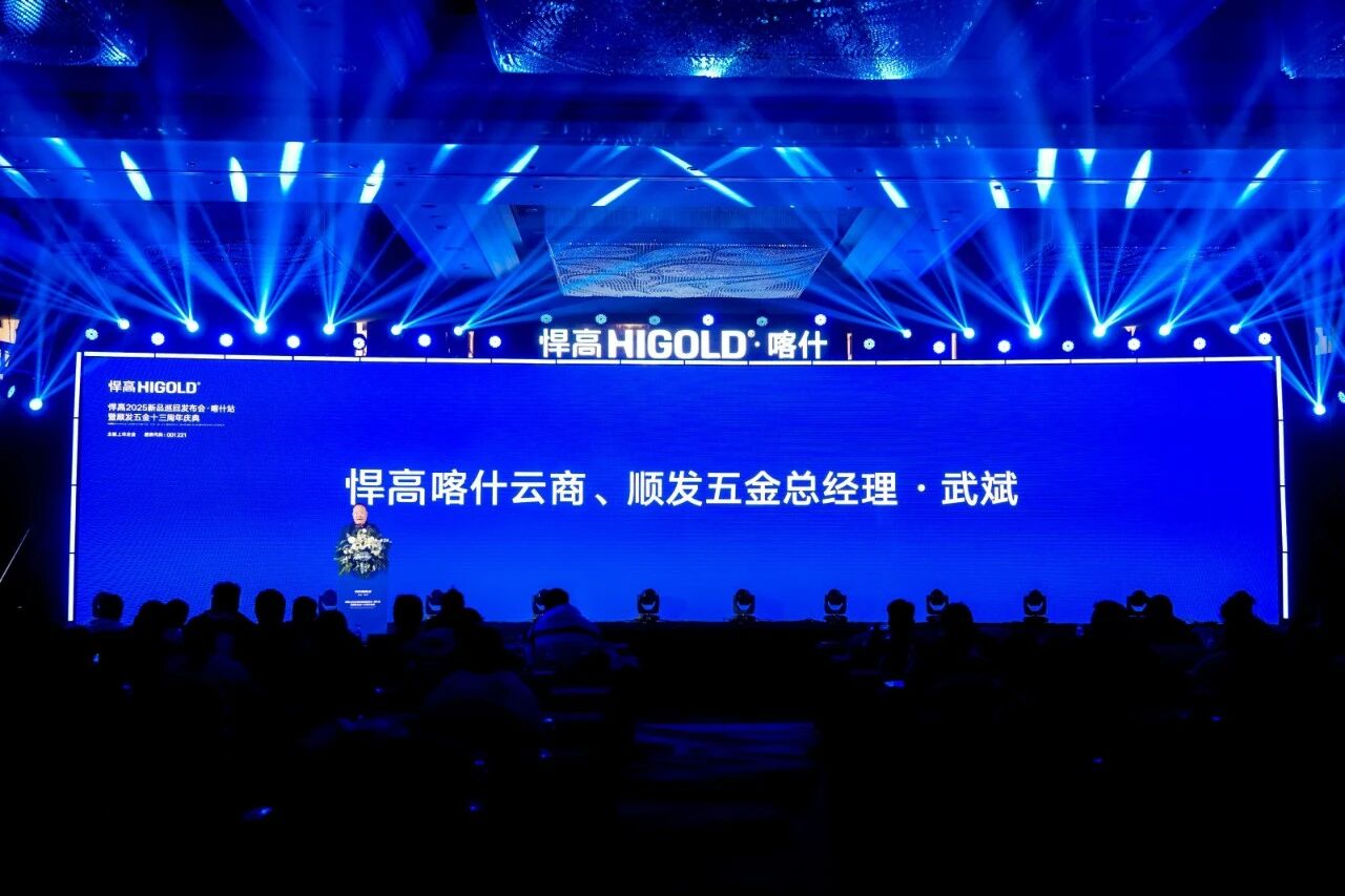 下午,悍高2025全球新品巡回发布会·喀什站暨顺发五金十三周年庆典,在喀什南疆环球港国际酒店掀启热潮。悍高集团功能五金事业部总经理汪宝春,携手悍高喀什云商、顺发五金总经理武斌按下鎏金掌印,共同为发布会揭幕启航。