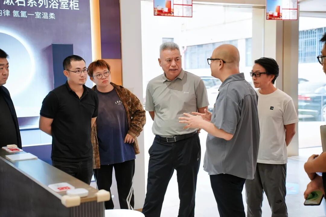 11月17日,金牌厨柜总裁潘孝贞率核心团队莅临大白卫浴总部进行参观交流。大白卫浴创始人林凯、董事长尹艳梅携团队热情接待并全程陪同。双方希望通过此次交流,在厨卫领域碰撞想法、分享经验,共同探索未来厨卫空间的发展方向与创新可能。