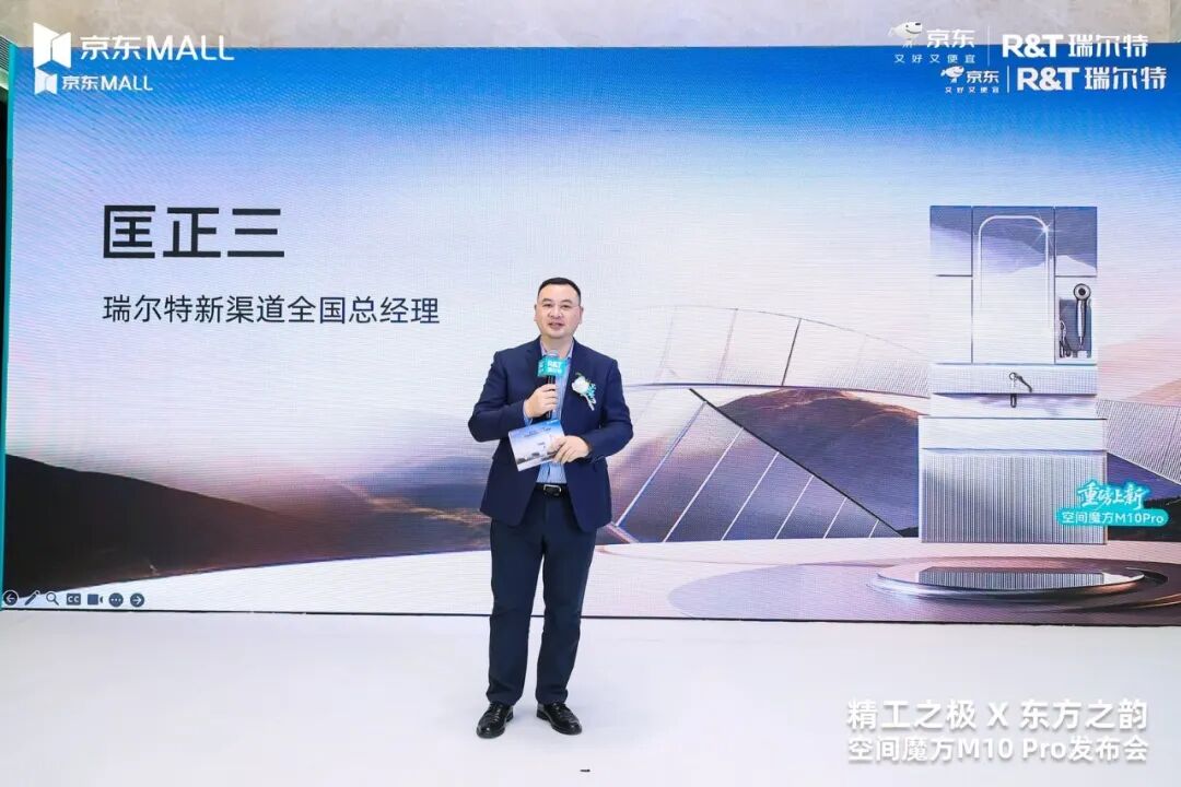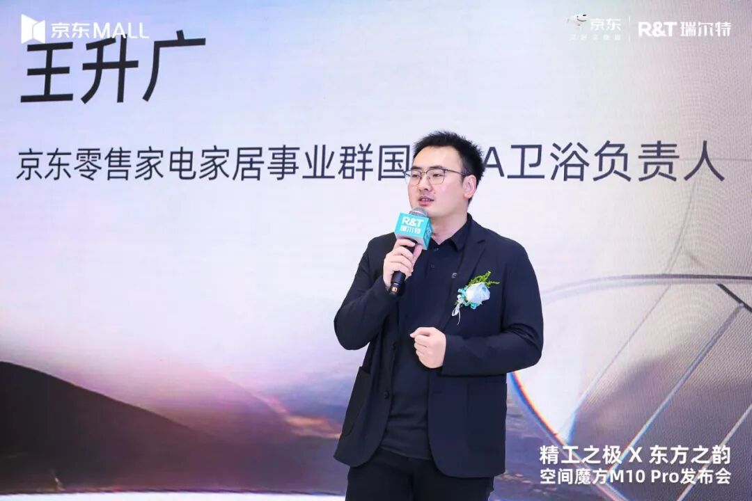 发布会现场,京东零售家电家居事业群国内KA卫浴负责人王升广先生、瑞尔特新渠道全国总经理匡正三先生等嘉宾出席活动并致辞,共同见证这一京东与瑞尔特深化合作、推动行业升级的重要时刻。