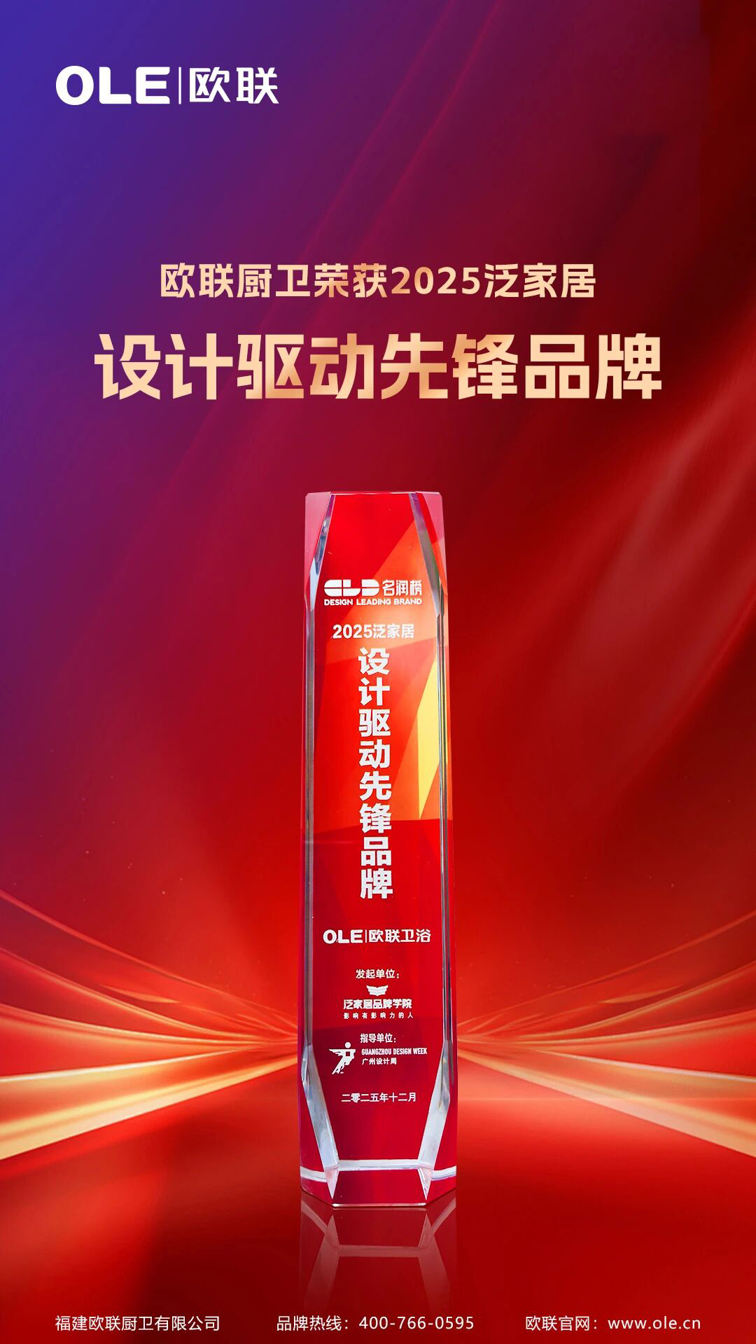 12月7日,2025泛家居品牌大会暨“名润榜”颁奖典礼在广州设计周盛大启幕。欧联厨卫凭借对设计创新的执着探索与卓越的产品质素,成功斩获 “2025泛家居设计驱动先锋品牌” 殊荣。这一奖项不仅是对品牌综合实力的权威认证,更彰显了欧联以设计为引擎、推动行业变革的先锋姿态。