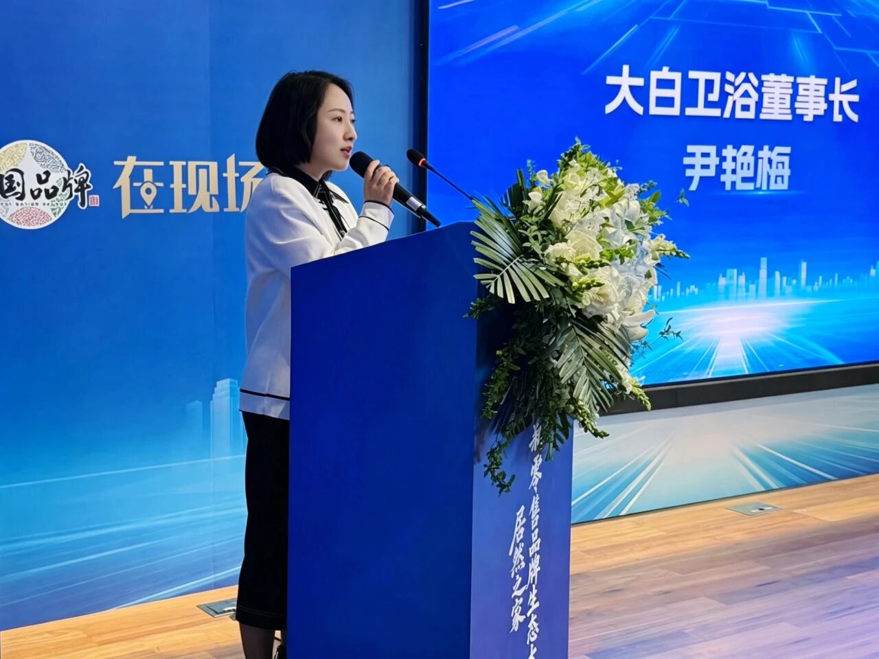 会上,大白卫浴董事长尹艳梅代表致辞。她表示,中国家居行业已拥有全球最完整、优质、高效的供应链体系,中国设计也已崛起并登上国际舞台,这是中国品牌向上生长的底气。面对行业承压与竞争,她坚信:头部平台的担当、优质品牌的坚守,叠加新零售的风口,三方合力方能重塑行业生态。