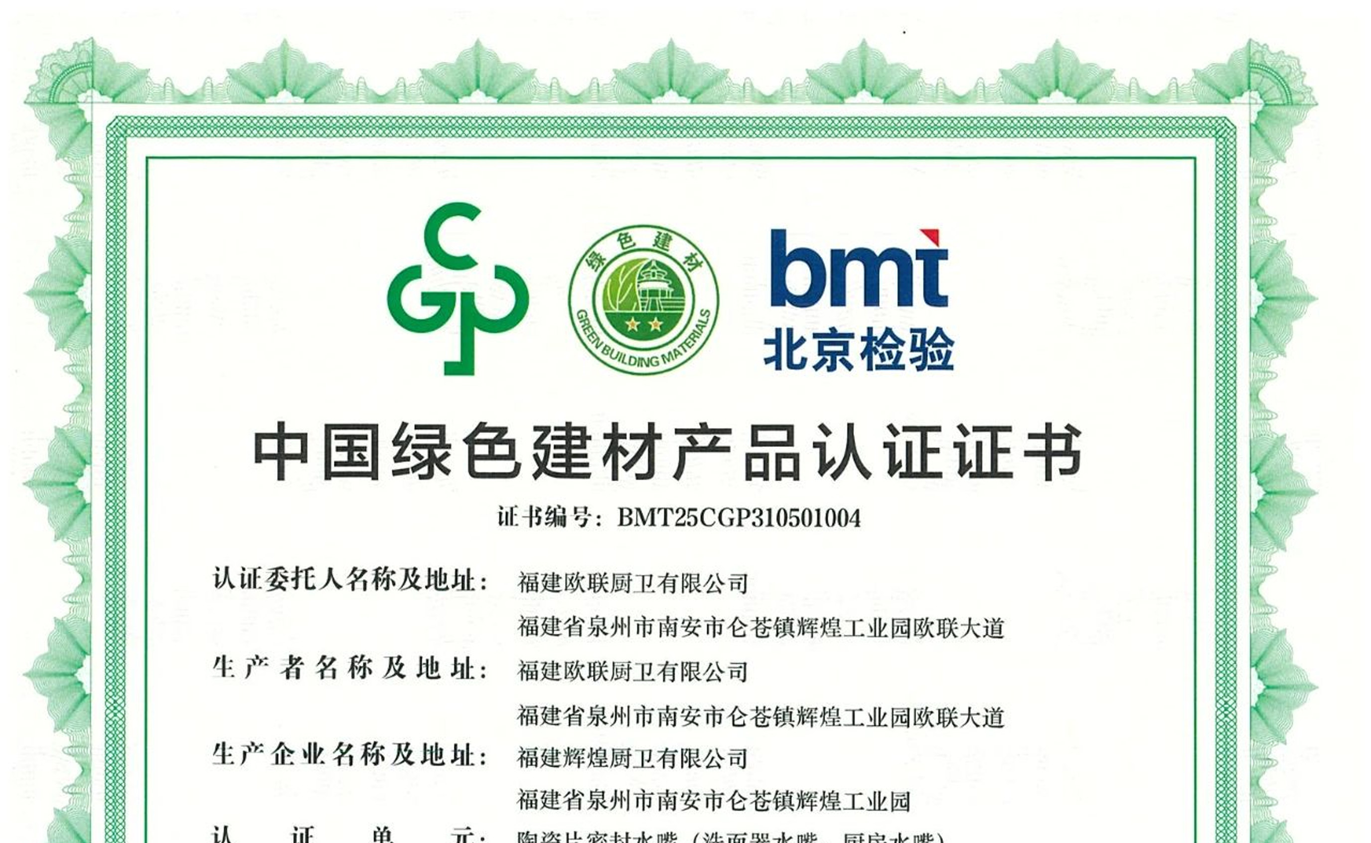 2025年,欧联厨卫再添国家级荣誉!继斩获“高质量发展·绿色健康家居”“匠心品牌”等多项大奖后,欧联厨卫凭借卓越的环保技术与产品实力,成功通过中国绿色建材产品认证,再次彰显行业领军地位!