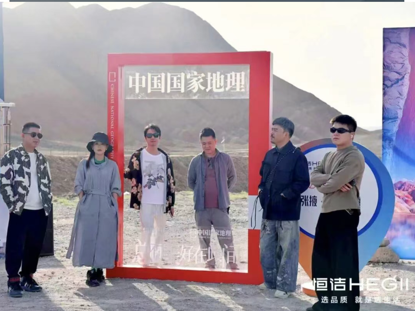 与设计师们一同行至打卡区,在恒洁联合中国国家地理以标志性“C框”打造的打卡装置前,设计师们纷纷合影留念,将最美丹霞收入相册。